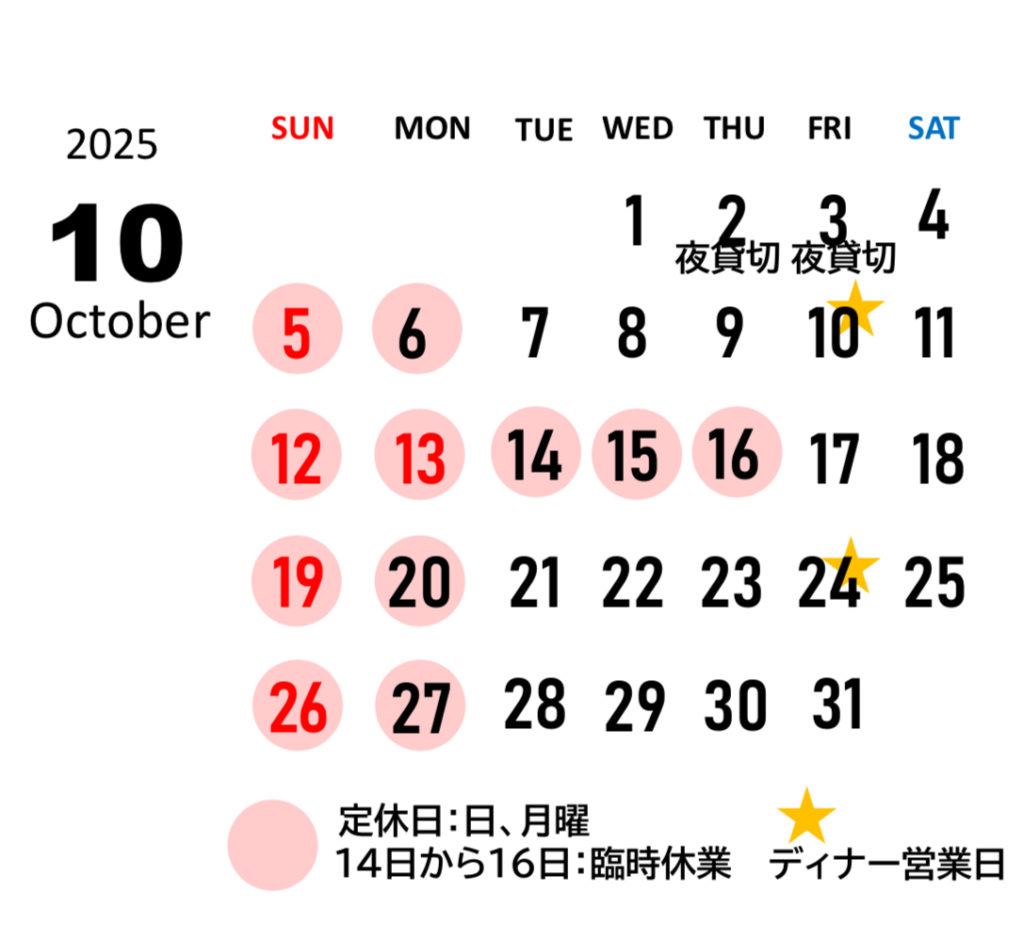 10月営業日のご案内